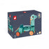 Make way! Our diplodocus ride-on is about to make its entrance! It goes without saying that all children will be proud to ride a dinosaur both inside and outside the house! Our round-eyed Portosaurus boasts blue hues that are enhanced with orange spikes! Its wide smile will make little ones want to go for lovely walks! Children aged 12 months and up can begin to develop their motor skills on this wooden balance bike with 4 ultra-stable wheels. The 2 front wheels move with the dinosaur's head when children want to turn. The 4 silicone-fitted wheels allow for a quieter ride. The shape of the seat (21 cm high) has been designed for children to climb on easily and sit comfortably. The natural wooden handles - protruding from the head - will help little ones stabilise themselves when going on an independent adventure, i.e. using their own legs to push! And don’t forget the surprise! The dinosaur's tail is made from an ultra-soft plush material and adds a fun touch to this ride-on! The Velcro-detachable part can be easily cleaned (hand washable at 30°C). This awesome ride-on is made from FSC® wood.