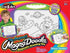 Set includes self-contained portable magnetic drawing board, 3 assorted stampers, and 1 magnetic drawing pen